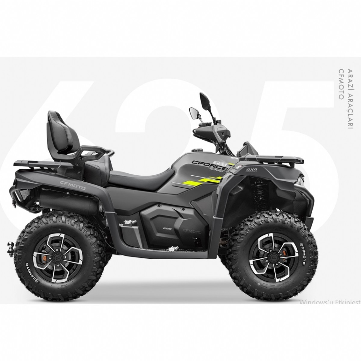 CFORCE 625 TOURING’le aşılması güç patikalar ve uzak hedefler sizi bekliyor. SaÄŸlam yapısı, güçlü motoru ve ileri teknolojisi güvenilirliÄŸi garanti ediyor. İki kiÅŸilik tasarlanan bu araç, her türlü arazide sorunsuz bir sürüÅŸ imkanı sunuyor. İçinizdeki maceracıyı serbest bırakın ve unutulmaz anılar yaratın. Motora gaz verin ve heyecanı baÅŸlatın!