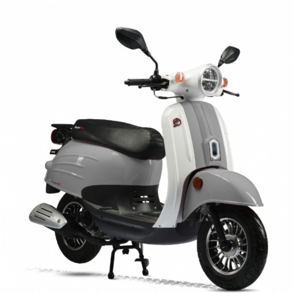 Motolux Vintage S Nardo Gri-Beyaz Elektrikli Motosiklet, klasik tasarımı modern teknolojiyle buluşturan şehir içi ulaşımın en şık çözümlerinden biridir. Retro hatları, zarif detayları ve çevre dostu elektrikli motoruyla hem nostaljik bir görünüm hem de çağdaş performans sunar. Şehirde konforlu, sessiz ve ekonomik bir sürüş deneyimi arayan kullanıcılar için özel olarak tasarlanmıştır.
