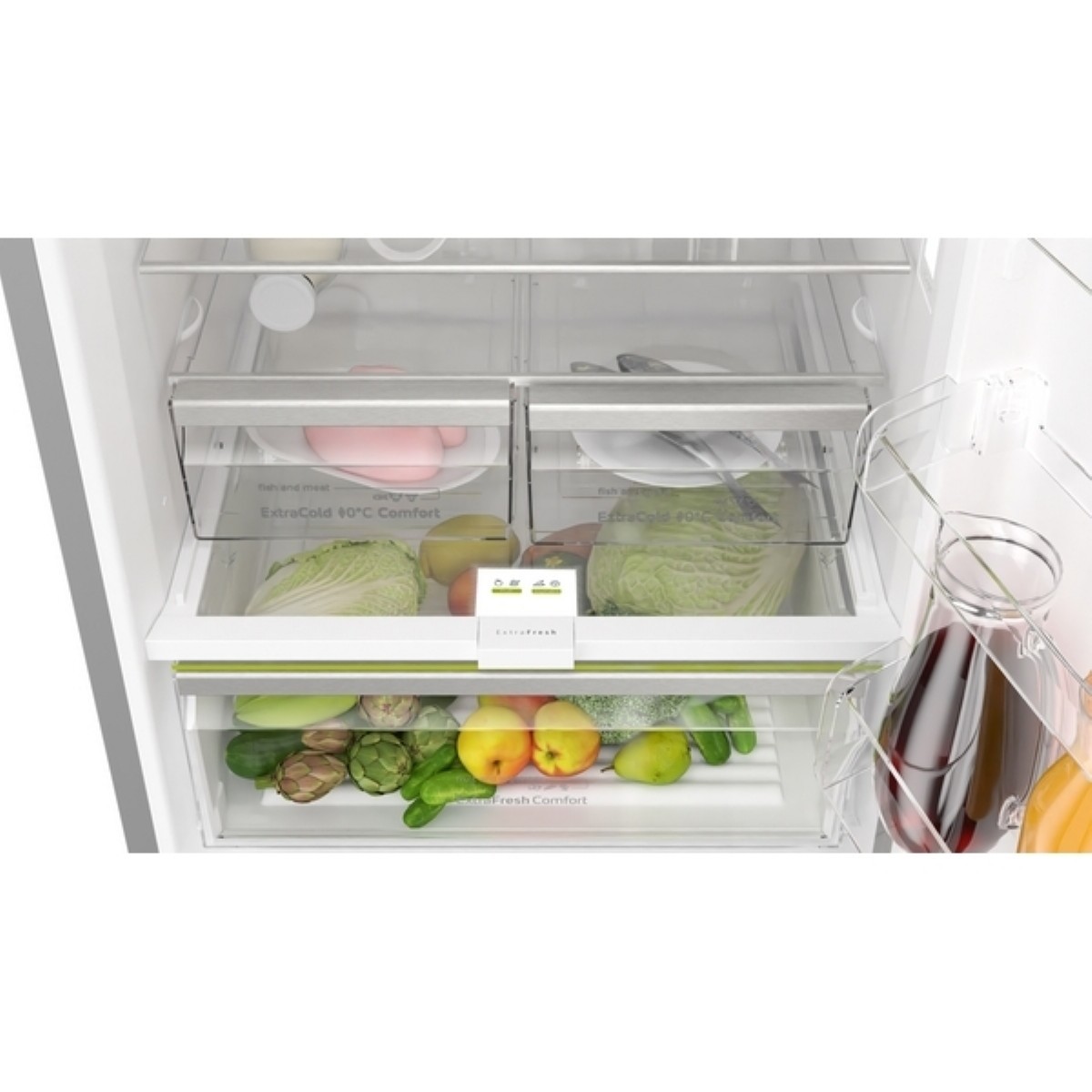 • 2 adet sıcaklık kontrollü ExtraCold <> 0°C Comfort çekmecesi - Et ve balık gibi yiyecekler daha uzun süre taze kalır.